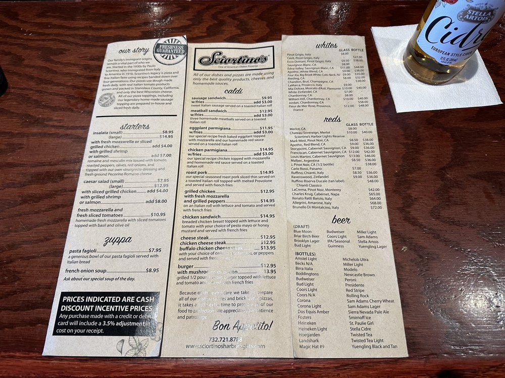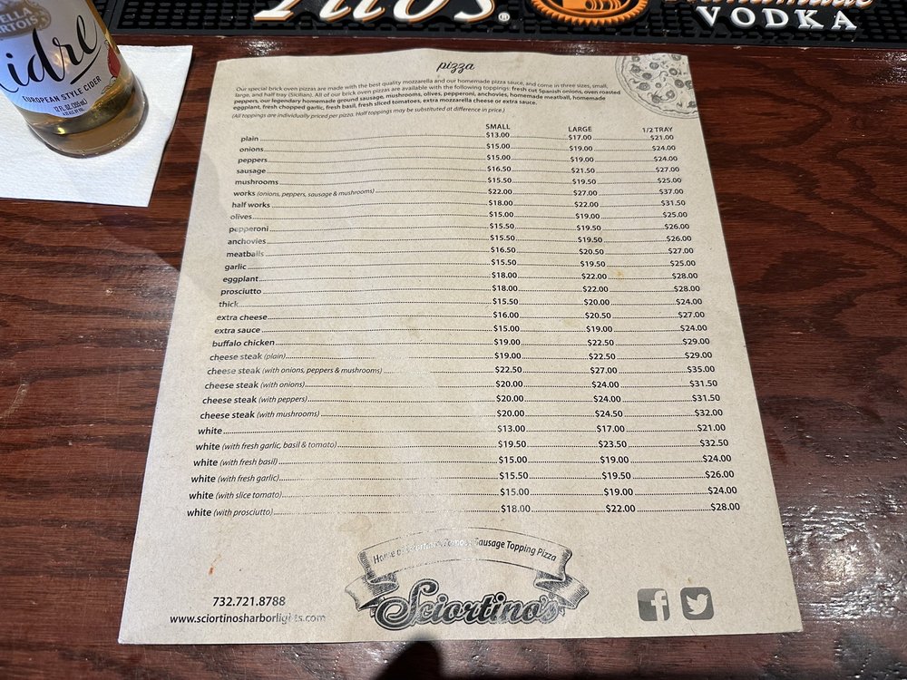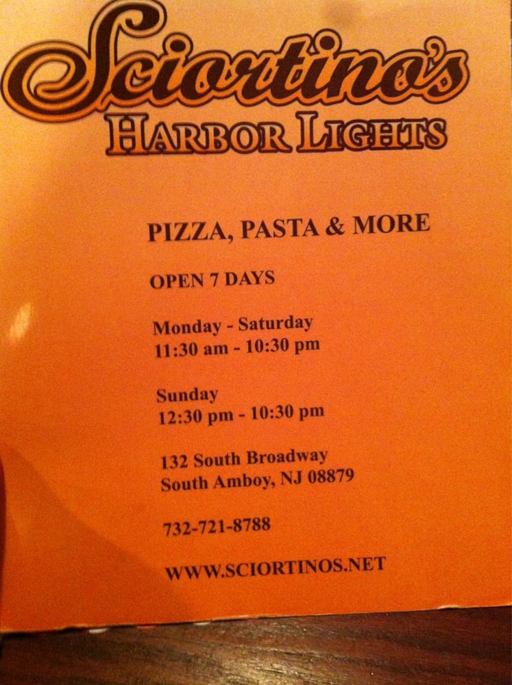 Sciortino's Harbor Lights, located in South Amboy, NJ, is a beloved Italian pizza restaurant known for its cozy atmosphere and delicious food. The menu offers a variety of options, including many vegetarian choices like eggplant and Caesar salad. Customers rave about the thin crust pizza with sweet sauce, crispy and charred to perfection. The red sauce is a standout, adding a unique and tasty flavor to every dish. The attentive service from servers like Liz adds to the overall dining experience. The restaurant's old-school charm and family-friendly environment make it a popular spot for locals and visitors alike. With outdoor seating, a full bar, and live entertainment on select nights, Sciortino's Harbor Lights is a must-visit for anyone craving authentic Italian cuisine and a welcoming atmosphere.